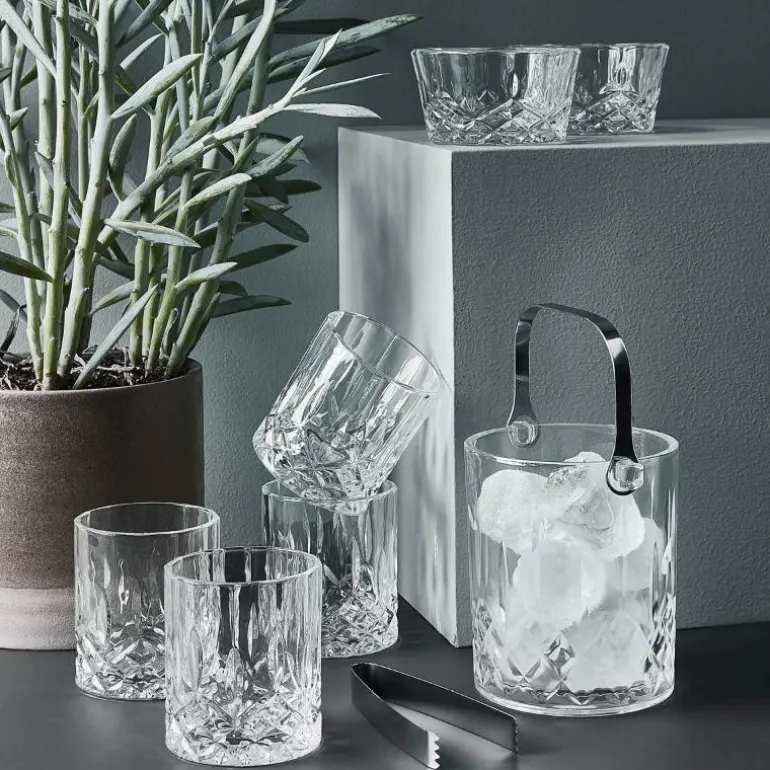Denne isbøtten fra Aida tilhører serien Harvey, og gjør seg utmerket på bordet. Glasset har et elegant mønster som er inspirert av fasettert, luksuriøst krystallglass. Håndtaket gjør det enkelt å flytte rundt på bøtten og den medfølgende klypen hjelper deg med å få et godt grep på isbitene.
