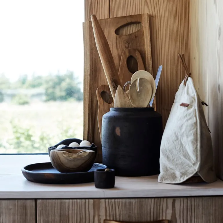 For å skape et organisk og naturlig uttrykk på borddekkingen din, kan du kombinere Hazel-glasset med trefat. Før bruk anbefales det å gni inn glasset med matolje og deretter varme det i en middels varm ovn i 30 minutter for å forbedre holdbarheten.