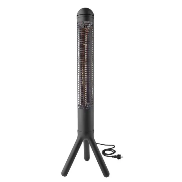 Med stabilt design på tre ben og en innebygd veltesikring som automatisk slår av varmeren hvis den skulle tippe, er denne varmeren både trygg og enkel å bruke. Bare plugg den i stikkontakten og nyt varme som varer hele kvelden.