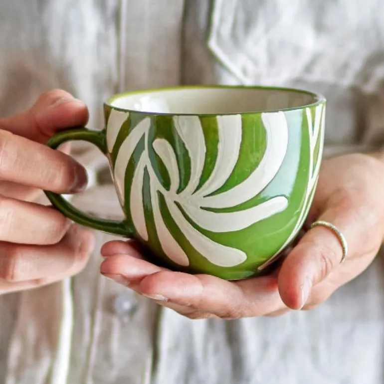 Heikki Koppen fra Bloomingville er det perfekte tilskuddet til samlingen av krus og kopper. Den vakre grønne glasuren kombinert med et preget mønster i en lys nyanse gir koppen et unikt og innbydende uttrykk som gjør hvert øyeblikk av kaffe eller te litt mer spesielt. Bland Heikki Koppen med andre design eller hold stilen ren med mer av samme type. På grunn av den håndlagde designen og glasurens natur kan det oppstå små fargevariasjoner.