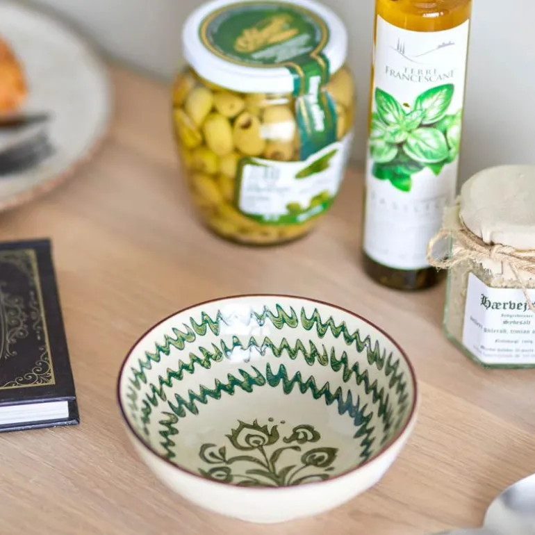 Heikki Bollen fra Bloomingville er en håndmalt bolle med et vakkert og unikt mønster i nyanser av grønt som vil skille seg ut på ethvert spisebord. Det er perfekt til frokost, eller søte og salte snacks. Hver bolle er unik, da hvert penselstrøk gir et personlig preg og skaper variasjoner i designet.