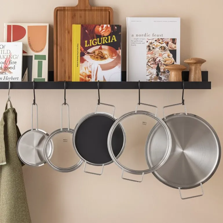 Lokket har et flatt og brukervennlig design som kan stables eller henges opp, og fungerer samtidig som varmeplate for tallerkener eller skåler. Laget av 90 % resirkulert stål, er lokket både robust og miljøvennlig. Det kan kombineres med alle Eva Trio-produkter i faste størrelser, og tåler ovn og oppvaskmaskin. Lokket selges enkeltvis, slik at du kan kjøpe det som passer dine behov.