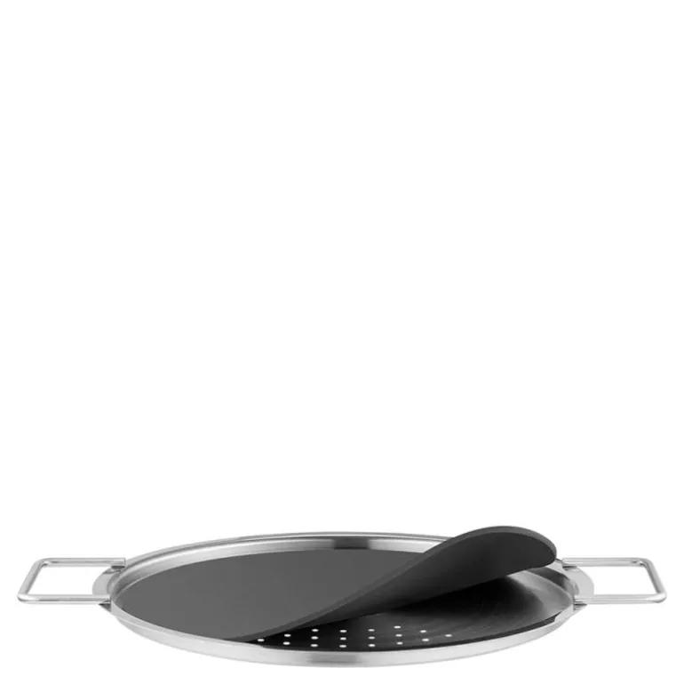 Hellelokket i rustfritt stål har integrert sil som er dekket av en silikontopp. Når du heller, slipper silikonet automatisk lokket slik at vannet kan renne ut gjennom silen.