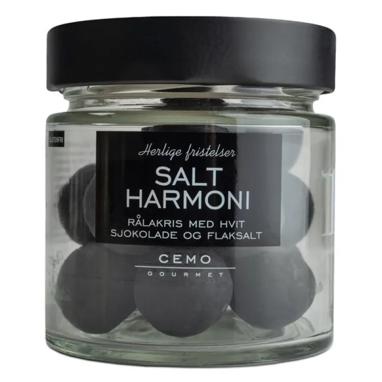 Herlige Fristelser lakriskuler salt harmoni fra Cemo. Nydelige lakriskuler laget med rålakris, kremet hvit sjokolade og et delikat hint av flaksalt. Den perfekte balansen mellom søtt og salt gjør disse lakriskulene uimotståelige. I tillegg er lakrisen glutenfri, så alle kan nyte denne smakfulle godbiten.