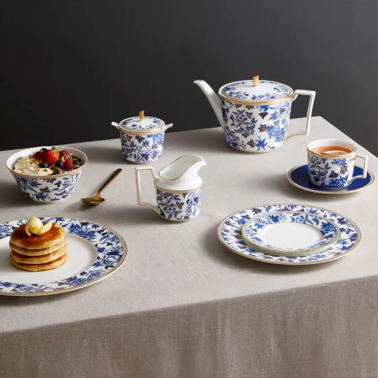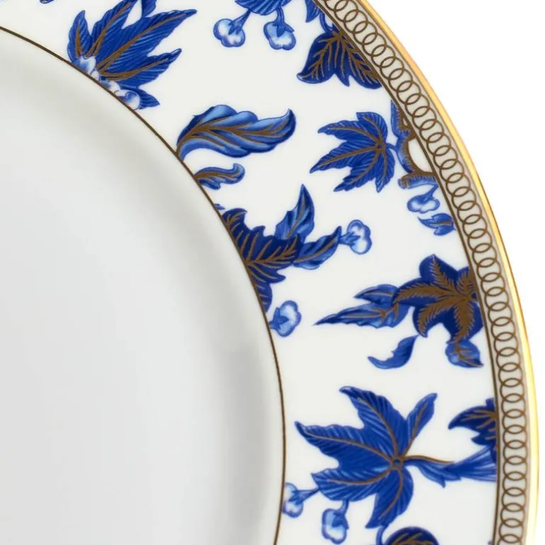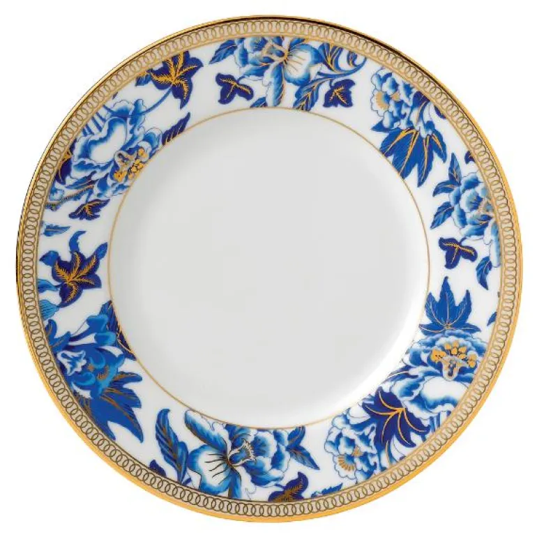 Hibiscus Plate 23cm/9in Accnt. Inspirert av et Wedgwood-arkivmønster som dateres tilbake til rundt 1810, er Hibiscus en sofistikert kolleksjon med tidløse, klassiske elementer og rikt utsmykket med gull. Dette stilige mønsteret har et slående design av orientalske blå nyanser og overdådige botaniske detaljer, og med 22 karat gull påført for hånd for en elegant og overdådig finish. Perfekt til formelle middager, men kan også bruke som et stilfult alternativ til hverdags. Er flott i kombinasjon med hvitt.