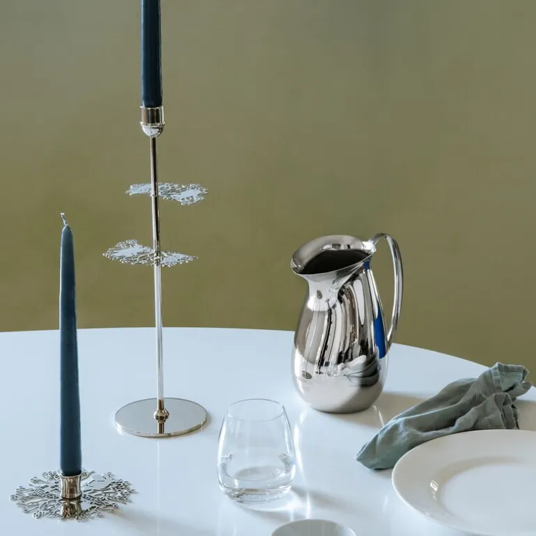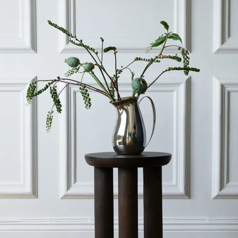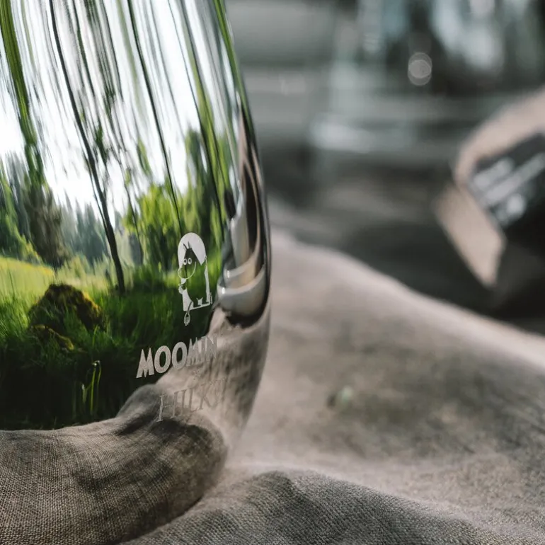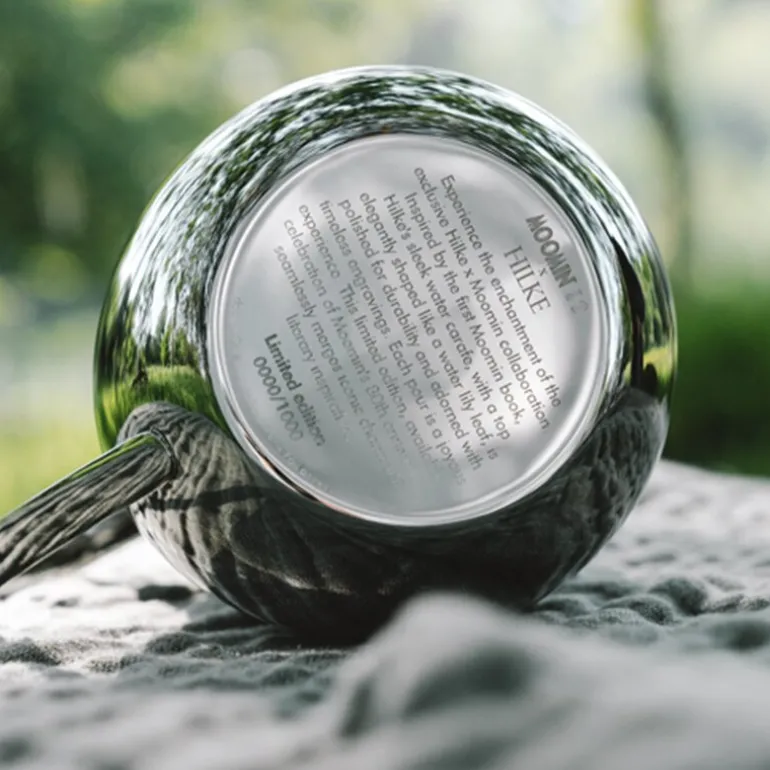 Lekker mugge 1,5L fra Hilke x Mummi i polert stål. Hver mugge fra Hilke Collection er et kunstverk i seg selv, nøye utformet og nummerert som en del av et begrenset opplag for å feire Mummis 80-årsjubileum. Inspirert av den første Mummiboken, «Småtrollene og den store oversvømmelsen,» hyller denne elegante karaffelen Tove Janssons rike fortellinger og karakterer, samtidig som den bevarer en subtil tilknytning til Mummitrollets verden uten å bruke figurens form direkte.