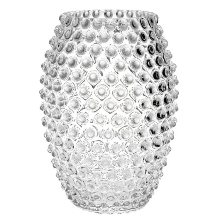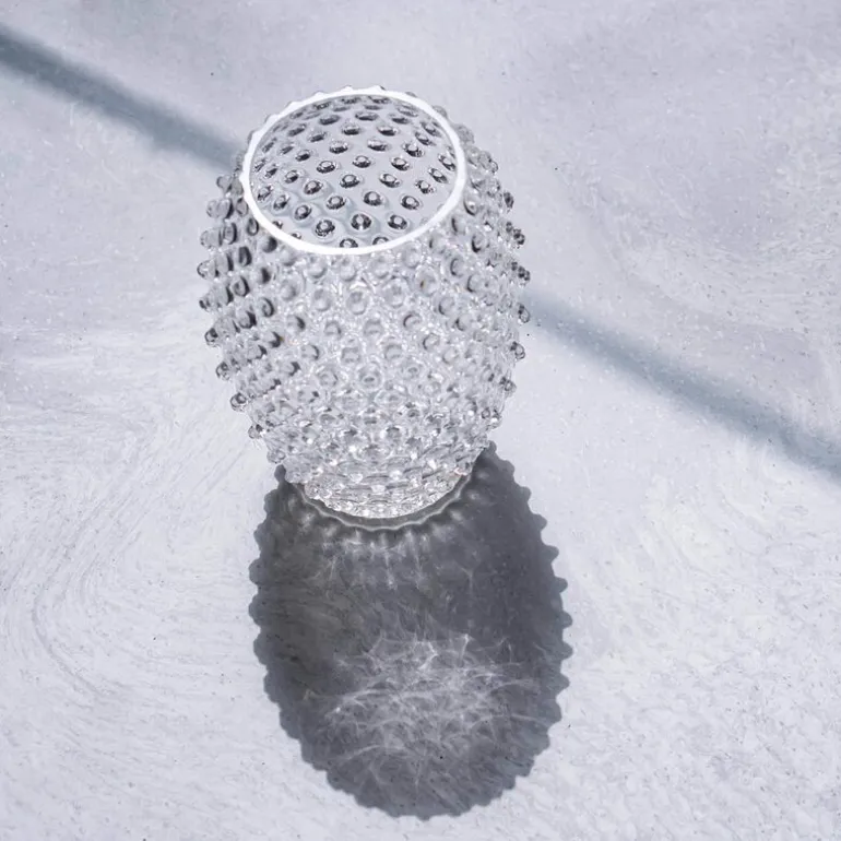 For å beholde tidløsheten til krystallen ble det laget et statement-stykke av glass. Denne vasen reflekterer lyset på en vakker måte. Dens uortodokse form og nagledekor gjør vasen til en perfekt følgesvenn for friske blomster med korte stilker skåret rett fra hagen din. Det kan være den ideelle gaven til faren din på deres spesielle dag eller til vennens bryllup og bursdager. Denne krystallglassvasen er blyfri. Alle Klimchi-produkter er 100 % håndlagde og hvert produkt er unikt. Håndlaget glass kan inneholde bobler og nyanser kan variere litt avhengig av produksjonsprosessen, dette er et bevis på dets håndlagde natur.