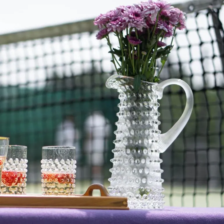 Klimchis klassiske bohemske krystallglass kommer virkelig til sin rett med denne klare slanke kannen. Det overlegne håndverket til hobnail-designet lar lyset spille vakkert gjennom de avsmalnende sidene, noe som gjør det til et virkelig fantastisk midtstykke for alle de spesielle anledningene. karaffelen kan inneholde opptil 1 liter av drikken. Førsteklasses funksjoner som et teksturert håndtak gir deg et komfortabelt grep på kannen, mens isleppen holder tilbake isbiter. Alle Klimchi-produkter er 100 % håndlagde og hvert produkt er unikt. Håndlaget glass kan inneholde bobler og nyanser kan variere litt avhengig av produksjonsprosessen, dette er et bevis på dets håndlagde natur.