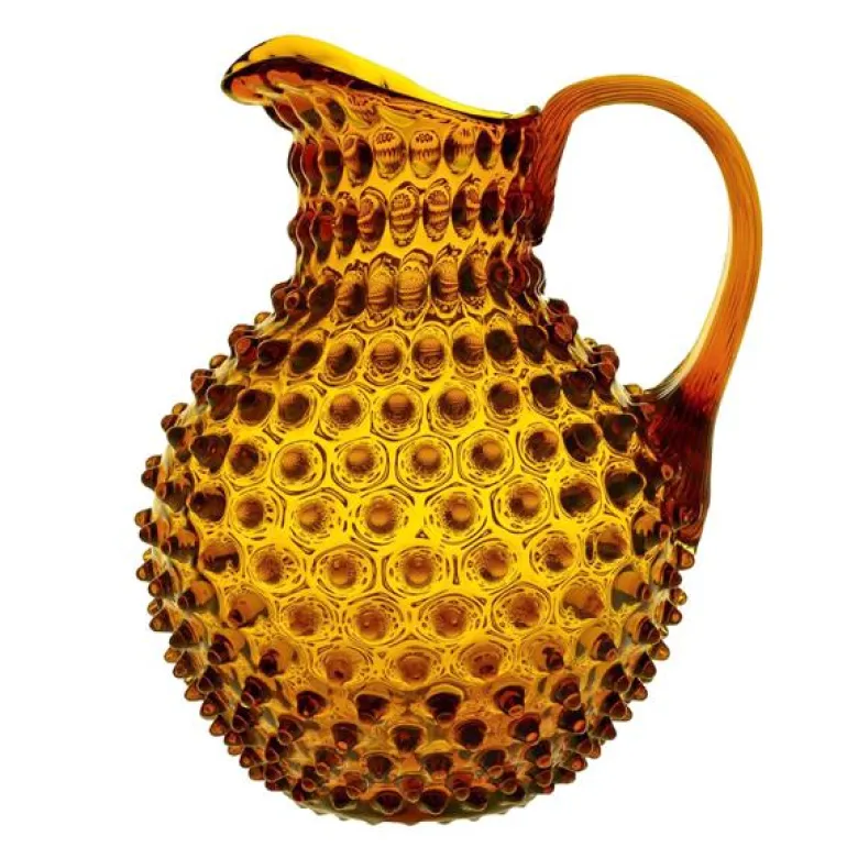 Enten brukt som en vase til blomstene dine eller som en vannmugge, vil denne muggen friske opp ethvert rom og bli en flott dekorasjon samt et vakkert og funksjonelt glassprodukt. Den har en estetisk kantede dekor som ble populær av Mr. Fenton i første halvdel av det 20. århundre. Den elegante avsmalnende håndtaket gir et komfortabelt grep på mugge, mens den håndformede isleppet hindrer vandrende isbiter, og den raffinerte åpningen tillater enkel rengjøring.