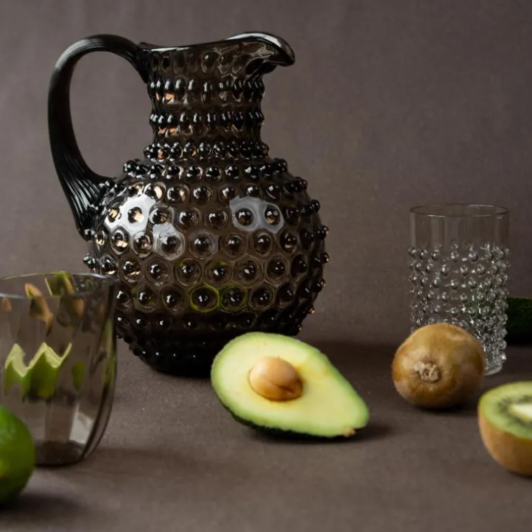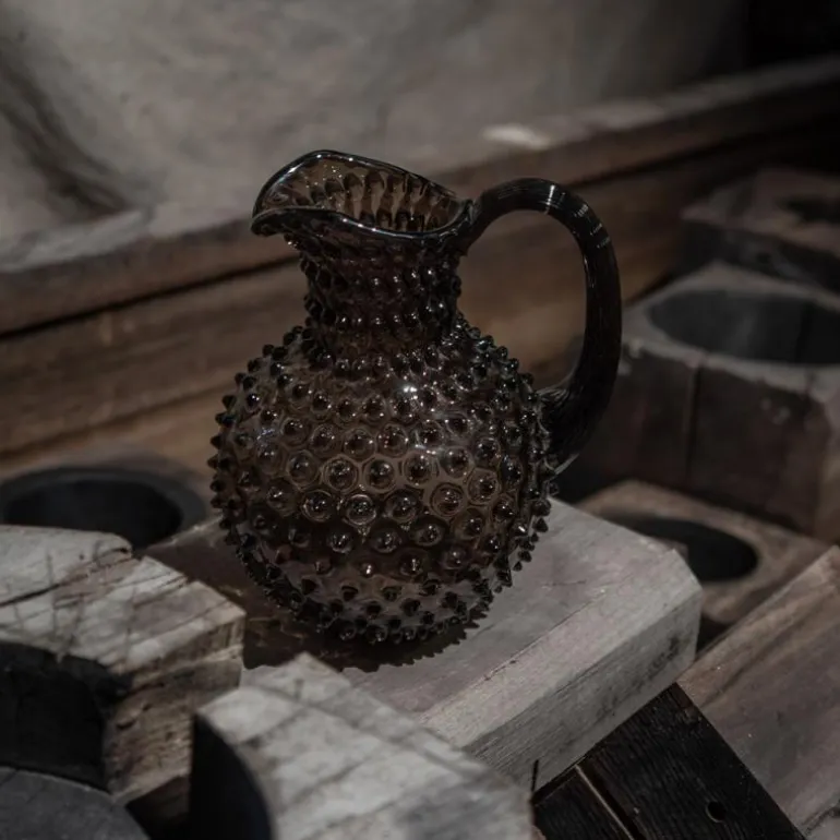 Enten brukt som en vase til blomstene dine eller som en vannmugge, vil denne muggen friske opp ethvert rom og bli en flott dekorasjon samt et vakkert og funksjonelt glassprodukt. Den har en estetisk kantede dekor som ble populær av Mr. Fenton i første halvdel av det 20. århundre. Den elegante avsmalnende håndtaket gir et komfortabelt grep på mugge, mens den håndformede isleppet hindrer vandrende isbiter, og den raffinerte åpningen tillater enkel rengjøring.