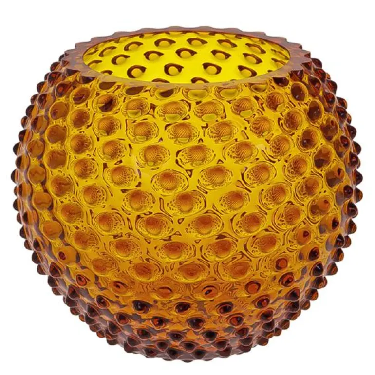 Hobnail vasen på 18 cm i fargen amber, fra Klimchi er en vakker vase som er skapt for å bevare krystallens tidløse skjønnhet. Med sitt unike utseende og dekorative hakk blir denne vasen den perfekte følgesvenn for dine ferske blomster med korte stilker, rett fra hagen. Den er en ideell gave til spesielle anledninger som farsdag, venners bryllup eller bursdager. Denne krystallglassvasen er håndlaget i Kamenický Šenov i Tsjekkia. Hvert Klimchi-produkt er unikt, og små variasjoner i bobler og nyanser kan forekomme på grunn av den håndlagde naturen.