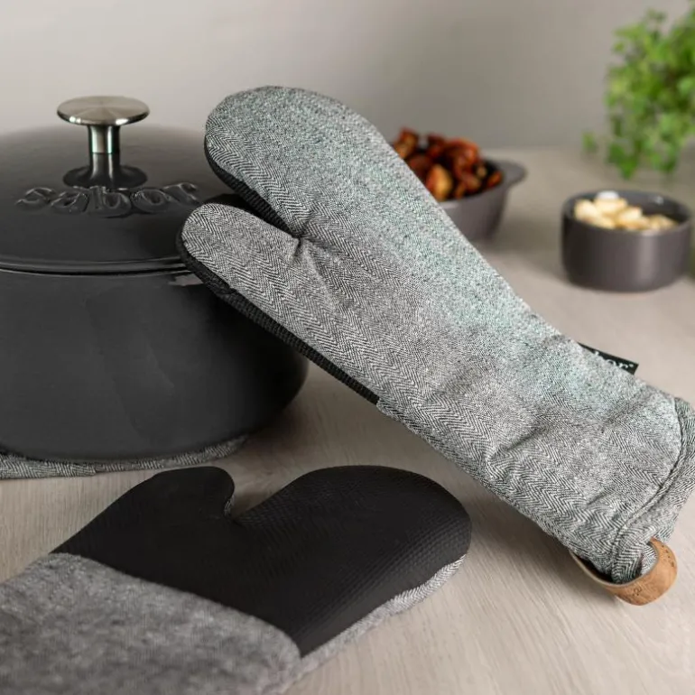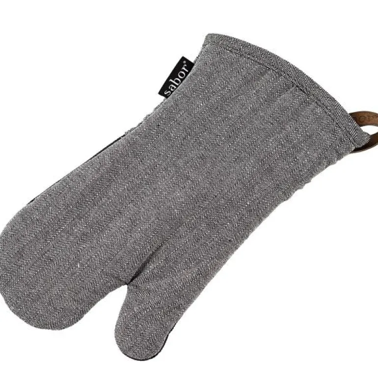 Grillvott i grått og hvit fiskebensmønster med lekker lysebrun løkke i kunstskinn. Innsiden er laget av 100% bomulls- og polyesterfiber. Utsiden er 50 % bomull og 50% polyester. Grepet er av 1,5mm neopren for varmebeskyttelse og som gir deg et godt grep på varme gryter, ildfaste former, stekebrett osv. Neopren er et gummimateriale som tåler opptil 250°C. Om temperaturen overstiges kan materialet smelte. Anbefales vask på 40°.