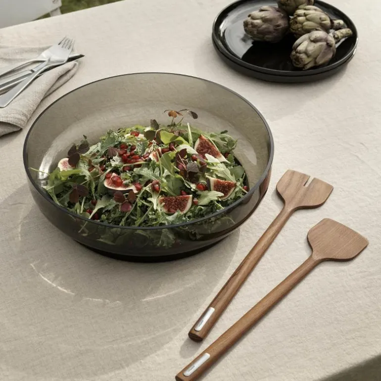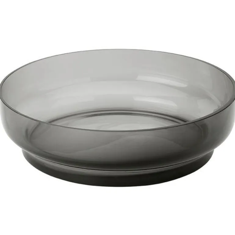 Stilren serveringsskål, designet av Unit 10 i Hoop-serien fra Stelton. Det er lett å anrette en deilig salat eller servere pasta og desserter i den romslige skålen, og skålen er dessuten flott alene eller som fruktfat. Det er ikke vanskelig å se at designerne har latt seg inspirere av 50’ernes funksjonelle formgivning. Glasskålens røkfargede nuanse passer perfekt inn i en moderne boligstil, og kan komplementere stort sett alle serviser