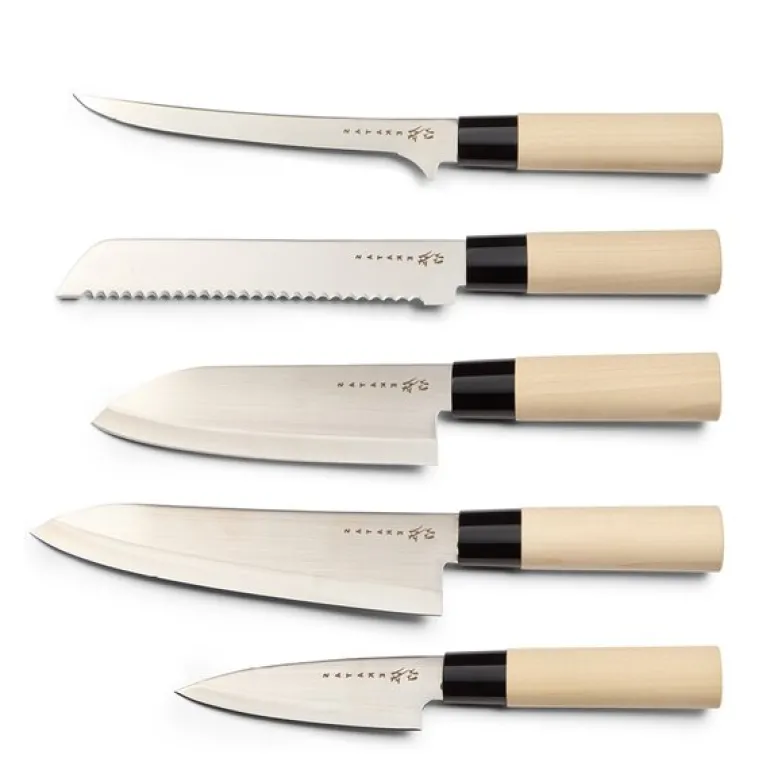 Håndtakene er laget av magnoliatre, noe som gir knivene et naturlig, godt grep og en lettvektig følelse som gjør dem behagelige å bruke over lengre tid. Det enkle, funksjonelle designet balanserer estetikk og ergonomi, slik at du får et verktøy som ikke bare ser bra ut, men som også er praktisk i bruk.