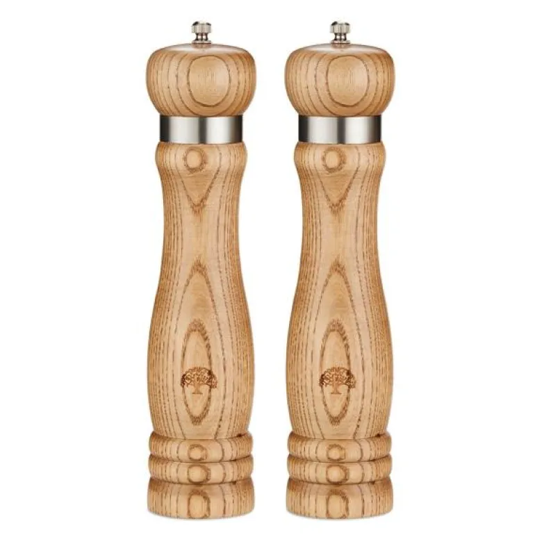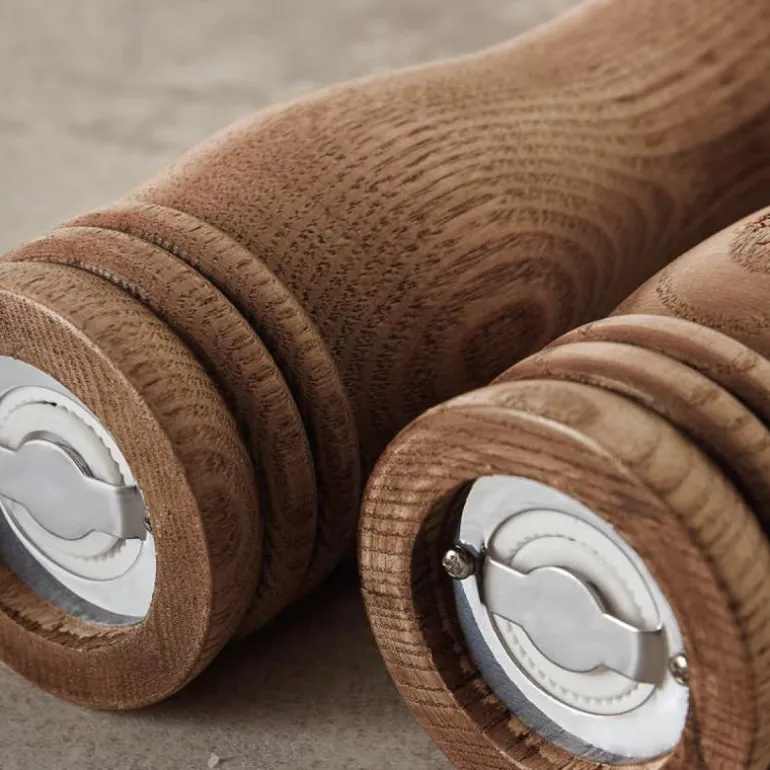 Salt- og pepperkvernsettet fra Barbary & Oak er laget av solid asketre og kombinerer eleganse med funksjonalitet. Med sitt tidløse design og en høyde på 19 cm er dette settet både stilfullt og praktisk på kjøkkenet. Hver kvern er utstyrt med en keramisk kvernemekanisme som sikrer jevn og pålitelig kverning, og de er tydelig merket med «S» og «P» for henholdsvis salt og pepper, noe som gjør dem enkle å skille og bruke. Dette settet tilfører både estetikk og funksjonalitet til enhver borddekking.