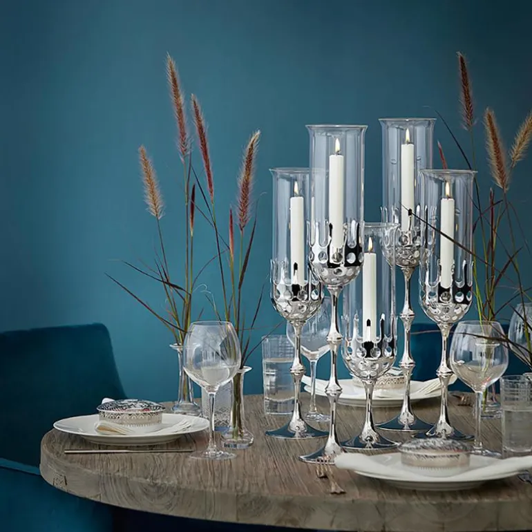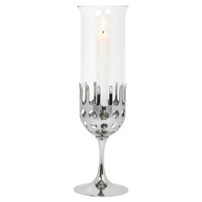 Den fantasifulle og elegante Hurricane-lysestaken er designet av Bjørn Wiinblad og lyser opp ethvert hjem på vakreste vis. Denne utgaven av den karakteristiske lysestaken er overflatebehandlet med krom for å gi staken en vakker, skinnende overflate og unik holdbarhet. Skap en eventyrlig og koselig stemning og bland Hurricane-lysestakene i forskjellige høyder på et vakkert dekket middagsbord. Like perfekte i julen som til sene sommermiddager på lune kvelder. God gaveidé til noen du er spesielt glad i og som setter pris på den eventyrlige designen til Bjørn Wiinblad. Du kan også kjøpe ekstra glass som passer til den vakre staken.