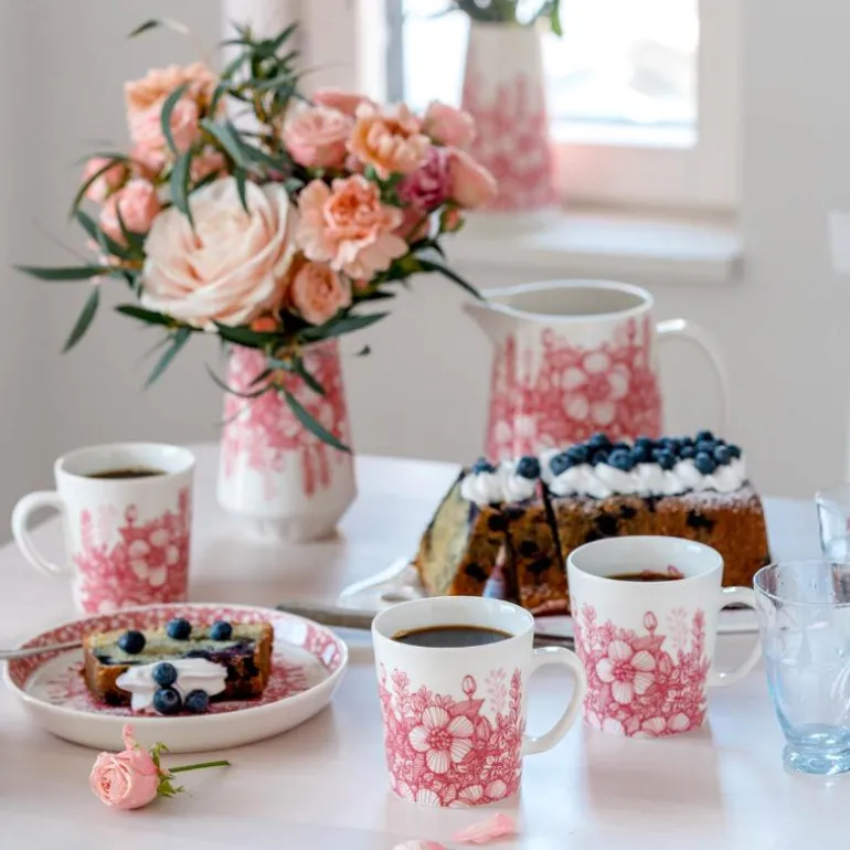 Huvila pitcher 1L. Designer Heini Riitahuhta ble inspirert av den varme følelsen i bestemorens hjem og den gode stemningen. Mønsteret er basert på en villrose med et snev av det gamle Finland og velkjente Arabia. De moderne formene sammen med et delikat mønster gjør at serviset skiller seg ut i borddekkingen. Designer Heini Riitahuhta. Kan vaskes i oppvaskmaskin.