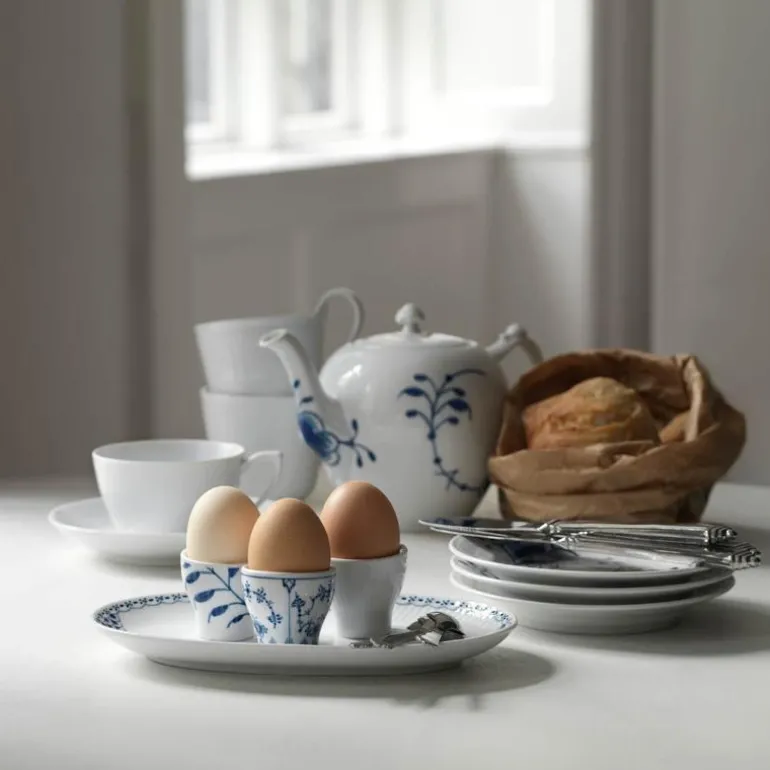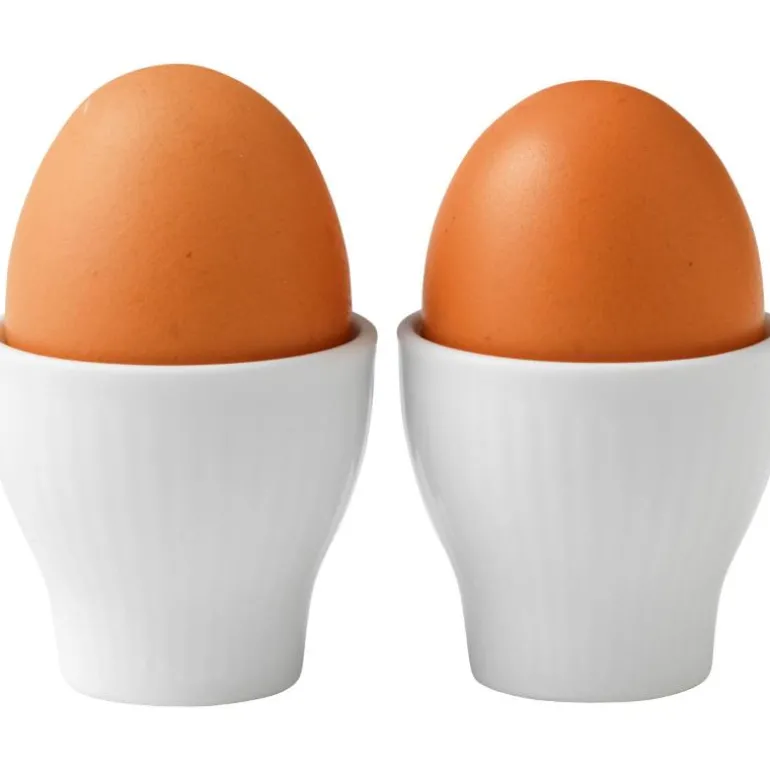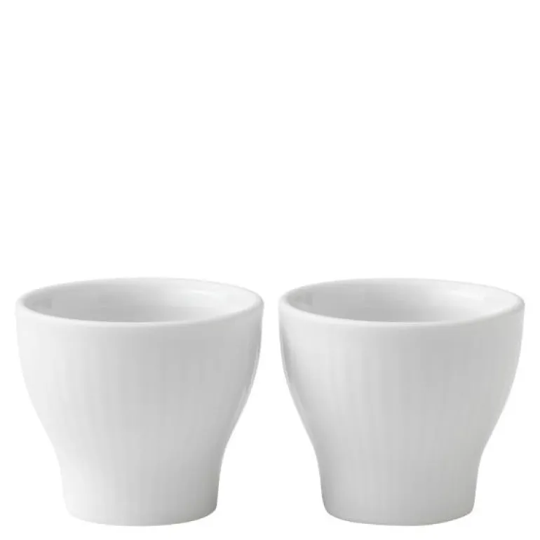 Hvit Riflet forteller historien om kongelig porselen og håndverk i en minimalistisk og moderne stil. Resultatet? En moderne klassiker. Dens rene hvithet og enkle design gjør den ideell å kombinere med andre riflede design. For de som liker å nyte livet uten at det går på bekostning av kvalitet, er Hvit Riflet et ideelt hverdagsservise for det moderne hjem. Elegant og enkelt. Grunndesignet er identisk med servisene Musselmalt Riflet, Blå Mega Riflet og Hvit Signatur. Det passer godt sammen med disse – men er også moderne og elegant på egen hånd! Hvit riflet eggeglass 2 stk. Tåler oppvaskmaskin og mikrobølgeovn.