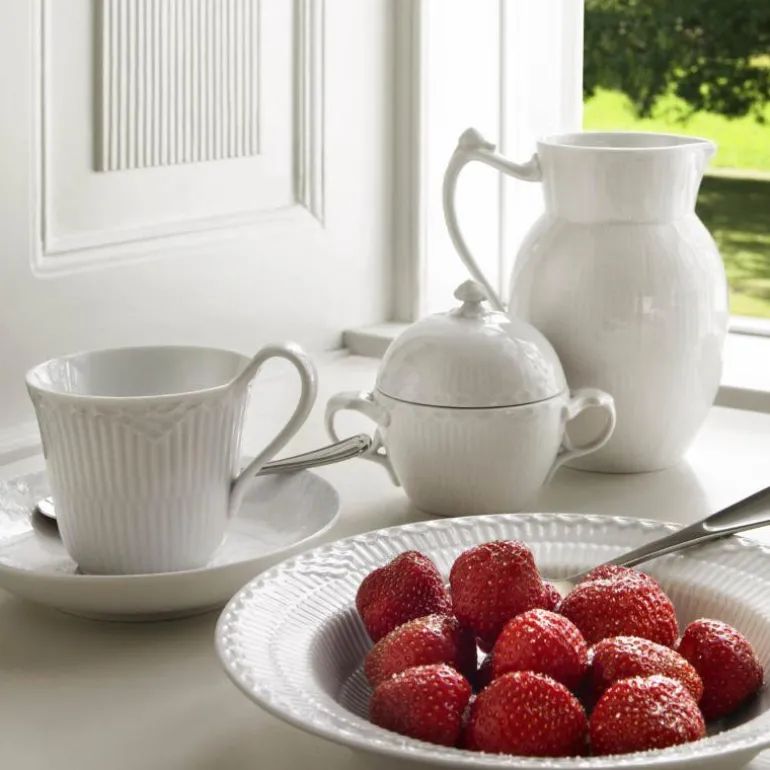 Royal Copenhagen Hvit Riflet har 2 års bruddgaranti og tåler oppvaskmaskin og mikrobølgeovn.