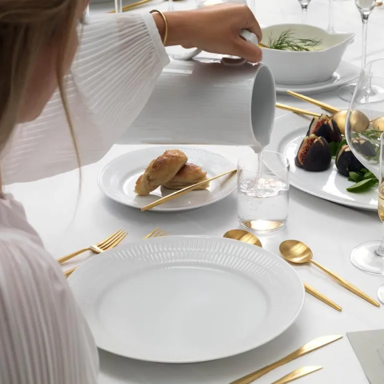 Hvit Riflet forteller historien om kongelig porselen og håndverk i en minimalistisk og moderne stil. Resultatet? En moderne klassiker. Dens rene hvithet og enkle design gjør den ideell å kombinere med andre riflede design. For de som liker å nyte livet uten at det går på bekostning av kvalitet, er Hvit Riflet et ideelt hverdagsservise for det moderne hjem. Elegant og enkelt. Grunndesignet er identisk med servisene Musselmalt Riflet, Blå Mega Riflet og Hvit Signatur. Det passer godt sammen med disse – men er også moderne og elegant på egen hånd! Porselen. Designet av Royal Copenhagen. Produsert siden 2014.