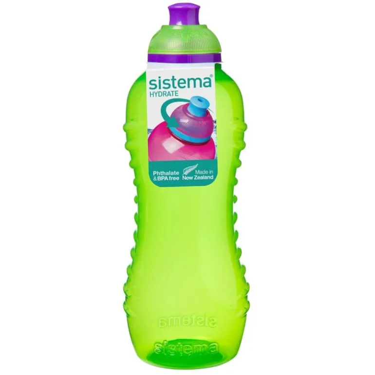 Sistema Twist ‘n’ Sip Bottles har et unikt lokk som gjør at flasken kan åpnes og lukkes uten at fingrene berører glidelåsetippen – en mer hygienisk måte å drikke på. Perfekt flaske til skole, sport, piknik og dager ut. Tåler oppvaskmaskin (toppstativ), og kan fryses.