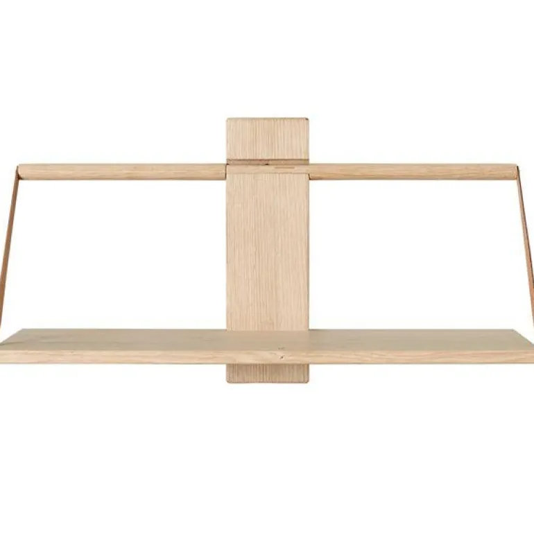 Wood Wall er en ny og spennende hylle med lærstropper. Den har et moderne og elegant utseende og passer perfekt inn i de fleste omgivelser. Med sin stilrene og flotte design kan den brukes i alle miljøer ? i entreen, på badet, på kjøkkenet og i stuen. Hyllen tar seg flott ut overalt og passer blant annet til oppbevaring av pyntesaker, bilder, blomster og lys. Wood Wall er enkel å montere på veggen. Du kan også bygge flere hyller oppå hverandre til en reol. Hyllen er laget av massiv eik, og stroppene er av ekte naturlær.