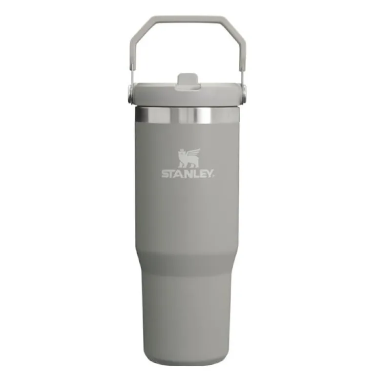 Iceflow Flip Straw Tumbler i fargen ash, fra Stanley, er en termoflaske med kapasitet på 0,89 liter. Den er utstyrt med en praktisk tut og sugerør som gjør det enkelt å drikke mens du er i bevegelse. Flasken er tett når lukket og holder drikken kald i opptil 12 timer. Den passer i koppholdere og egner seg godt til bil, treningssenter og utendørs bruk.
