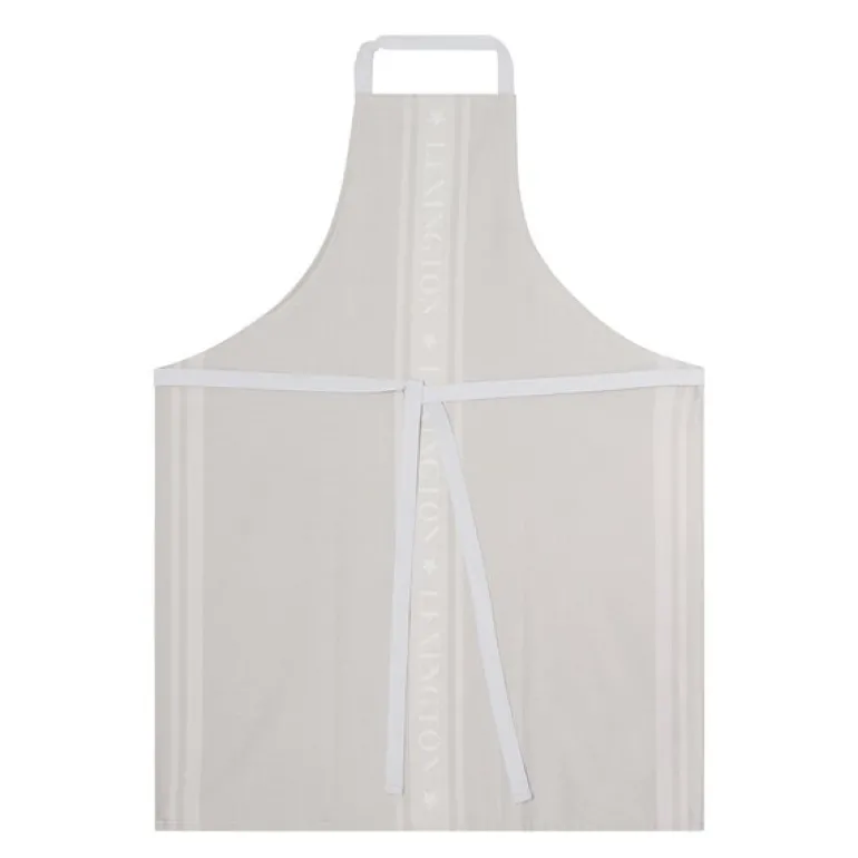 Med Lexingtons klassiske forkle i beige og hvitt får du både stil og funksjon på kjøkkenet. Forkleet har et raffinert stjernemønster og jacquardvevde striper som gir et elegant uttrykk, mens Lexington-logoen setter prikken over i-en. Laget av 100 % bomull med slitesterke stropper i fiskebensvev, er det designet for komfort og varighet.