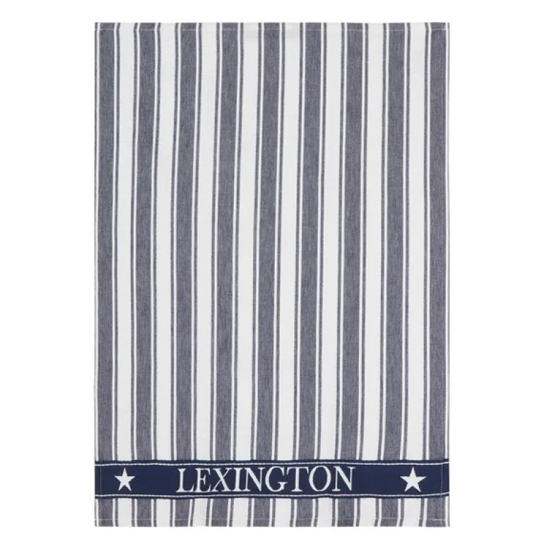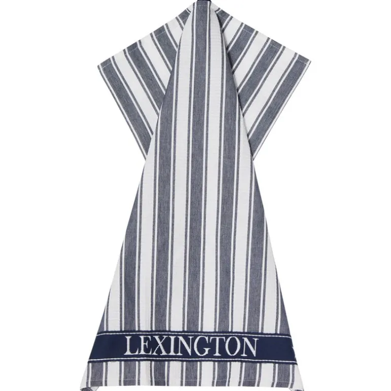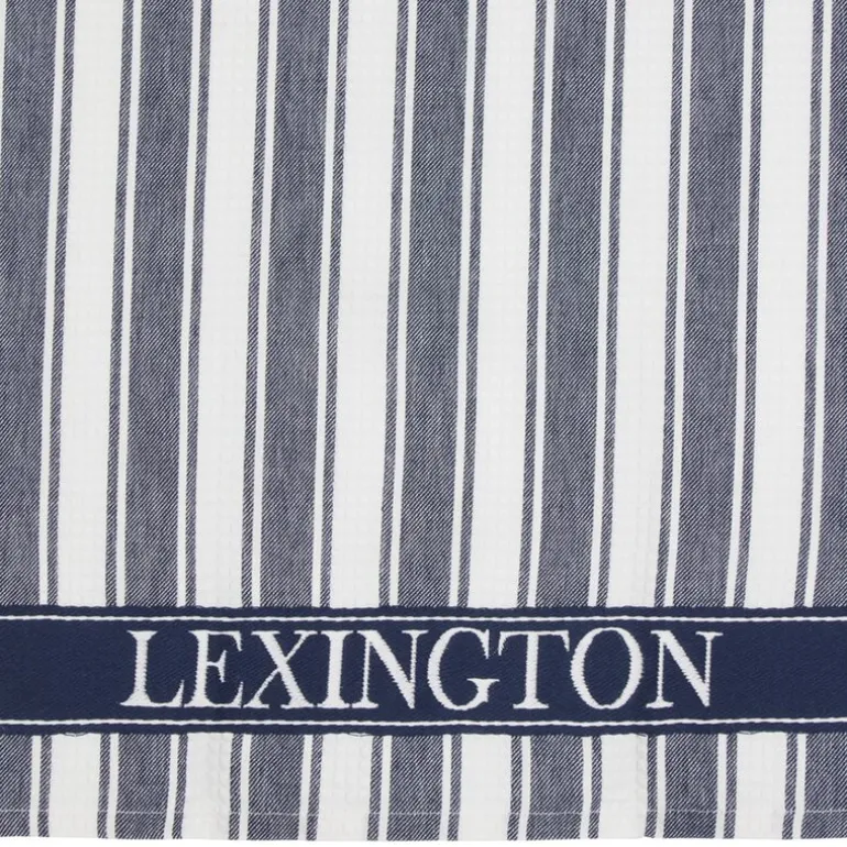 Dette kjøkkenhåndkleet fra Lexington forener klassisk design med moderne funksjonalitet. Den stripete vaffelstrukturen gir en taktil overflate som både ser flott ut og fungerer effektivt til tørking. Dressblå og hvit gir et friskt og tidløst uttrykk, og Lexington-logoen tilfører en diskret signatur til produktet.