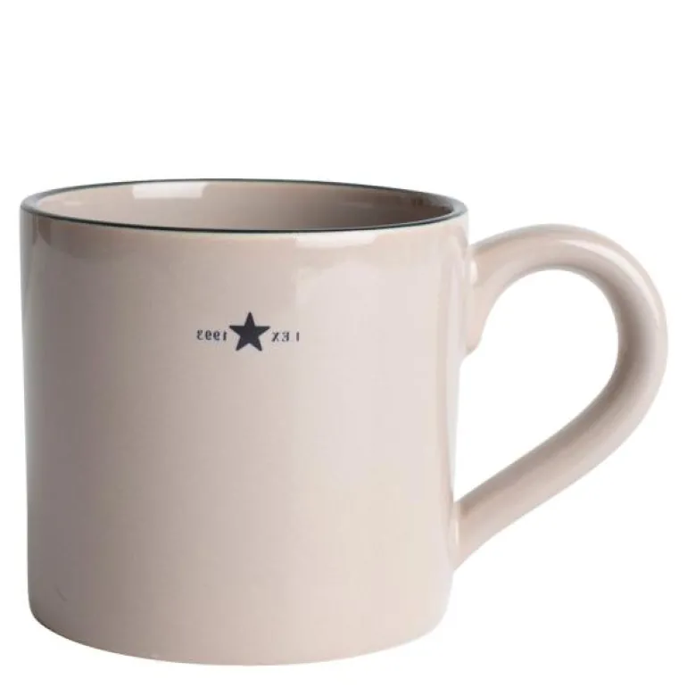 Icons krus 40 cl beige/blå fra Lexington. Dette sjarmerende steintøykruset er perfekt til morgenkaffen. Det er produsert i Portugal, der finkornet leire brennes slik at det keramiske kruset får en glatt overflate og er motstandsdyktig mot riper og hakk. Det har en håndmalt stripe rundt kanten og Lexingtons navn og etableringsår plassert på midten.