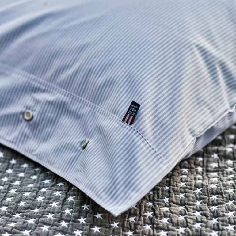 Pin Point putevar 65×65 cm blå/hvit fra Icons-serien til Lexington. Det stilige pin-point-sengetøyet kombinerer den klassiske og elegante Lexington-stilen i luksuriøs myk 100 % Oxford-bomull. Stripete pin-point putevar skaper en tidløs og moderne atmosfære på soverommet ditt med striper i dust blått og hvitt. Putevaret har lukking med synlige knapper i gummi.