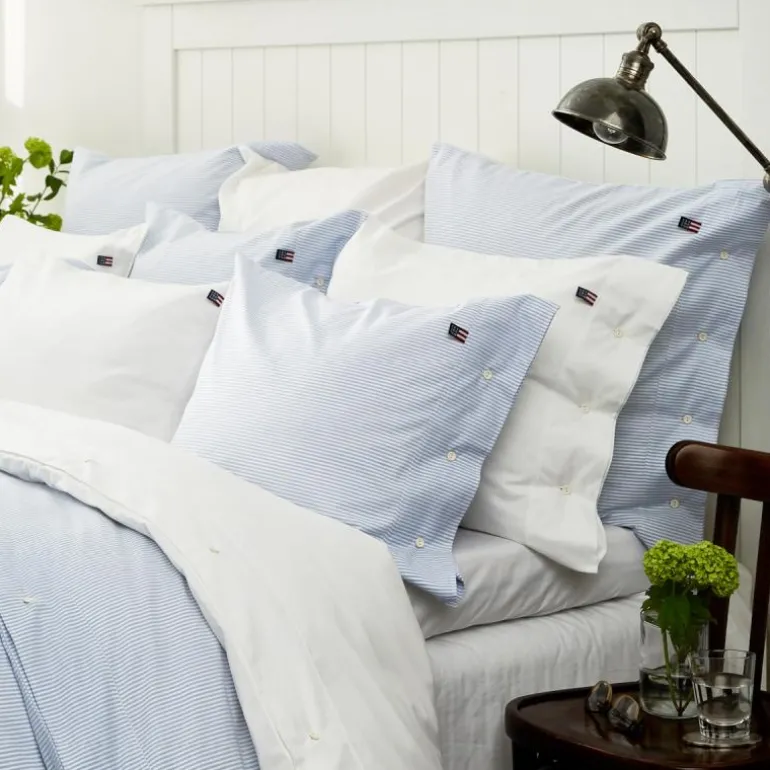 Pin Point sengetøy 200×220 cm blå/hvit fra Icons-serien til Lexington. Det stilige pin-point-sengetøyet kombinerer den klassiske og elegante Lexington-stilen i luksuriøs myk 100 % Oxford-bomull. Stripete pin-point dynetrekk skaper en tidløs og moderne atmosfære på soverommet ditt med striper i dust blått og hvitt. Dynetrekket har lukking med synlige gummiknapper.