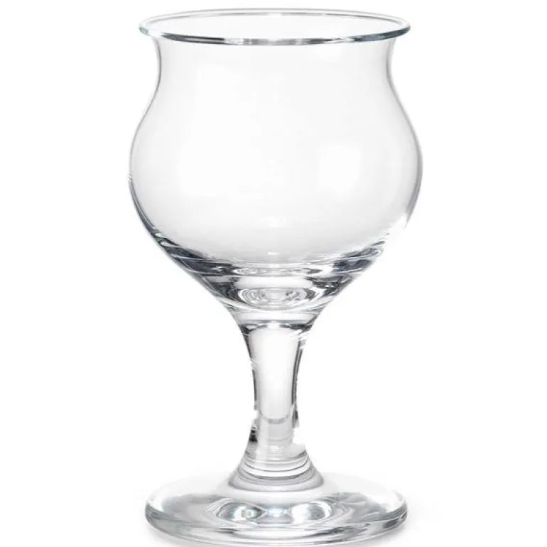 Dekk et bord med historie. Per Lütken var en av Holmegaards mest avanserte glassblåsere og har designet den munnblåste glasserien, Idéelle fra 1978. Hans forkjærlighet for dreide og feminine former går igjen i serien. Den myke, buede kanten på cognacglasset gjør det behagelig å drikke av.