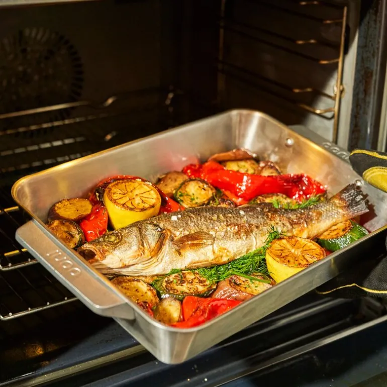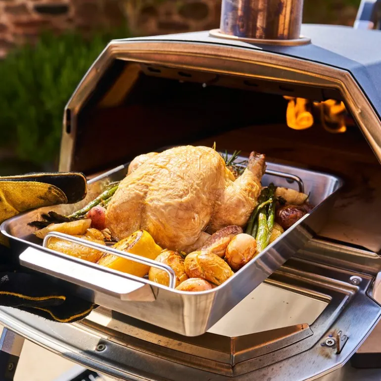 Ooni ildfast form i størrelse medium gir deg et komplett sett for steking og servering – perfekt for deg som vil lage smakfulle måltider med stil. Formen er laget i rustfritt stål av høy kvalitet og tåler svært høye temperaturer, både i Ooni pizzaovner og vanlige kjøkkenovner.