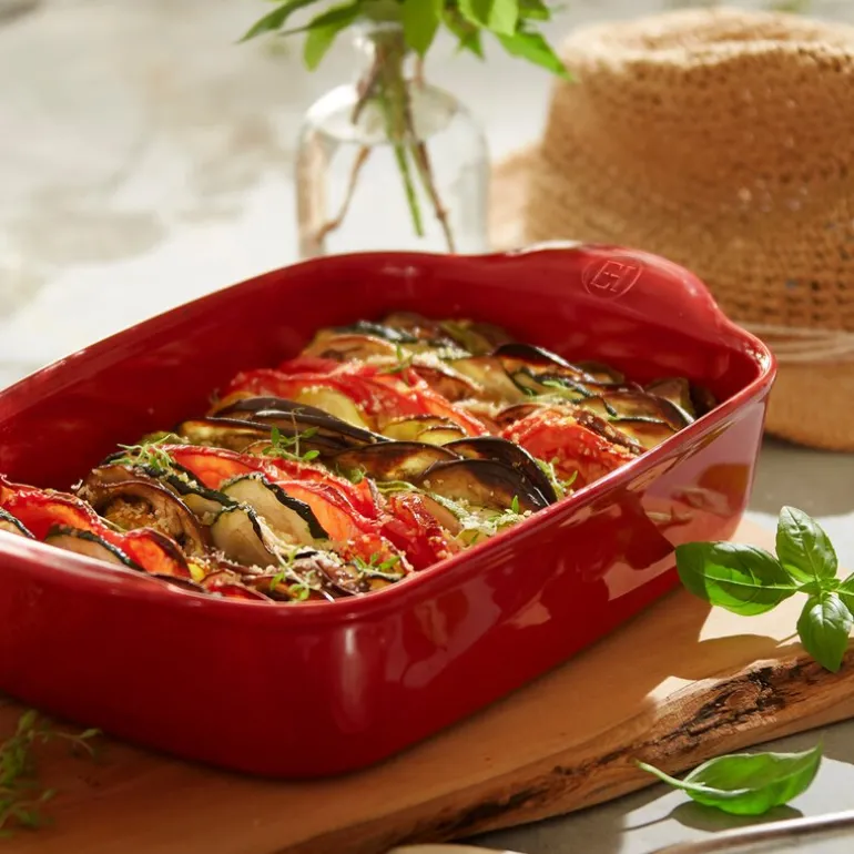 Med Emile Henrys ildfaste form i rød på 30 x 19 cm og 1,55 liter, kan du lage alt fra saftige lasagner til smakfulle gratenger. HR®-keramikken gir jevn varmefordeling, og formen er designet for å kunne gå direkte fra fryseren til ovnen, tåler temperaturer opp til 270 grader. Den ripebestandige glasuren sikrer at formen holder seg pen over tid, og den er enkel å rengjøre i oppvaskmaskinen. Laget i Frankrike og med en 10-års garanti, er dette et ideelt valg for alle som verdsetter kvalitet og praktisk eleganse.