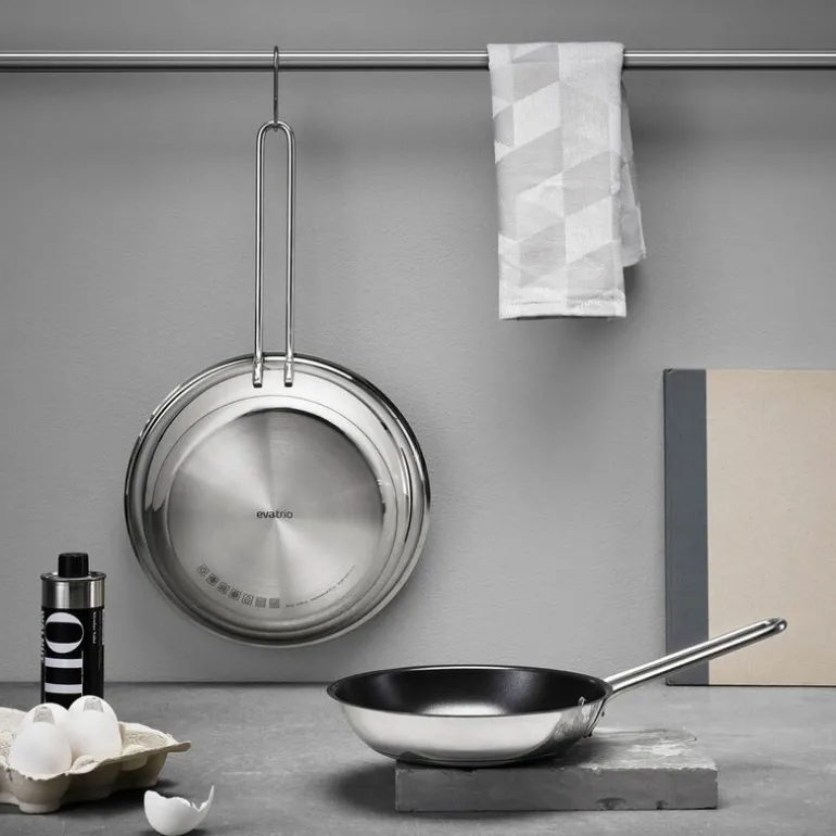 Induction Heat Control stekepanne 24 cm fra Eva Trio. basert på ny teknikk: «Induction heat control». Det er slutt på at maten brenner seg fast, og dermed får Slip-Let®-belegget lengre levetid. Den nye teknikken sikrer nemlig at stekepannen, på induksjonstopp, ikke blir varmere enn 230°C. Det blir lettere å kontrollere varmen, og belegget brennes ikke av pga. for høy varme. I likhet med resten av serien med gryter og panner er den fremstilt i 18/10 rustfritt stål av høy kvalitet som sikrer høy slitestyrke.