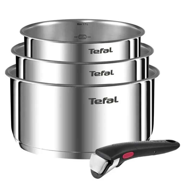 Håndtaket er utstyrt med et trepunkts sikkerhetssystem og tåler opptil 10 kg vekt, støttet av Tefals ti års garanti. Selve serien er laget av rustfritt stål av høy kvalitet med en tykk aluminiumsbunn som sikrer jevn varmefordeling og perfekte resultater. Innsiden har et holdbart Titan non-stick-belegg som forhindrer mat i å sette seg fast og gir en enkel rengjøring.