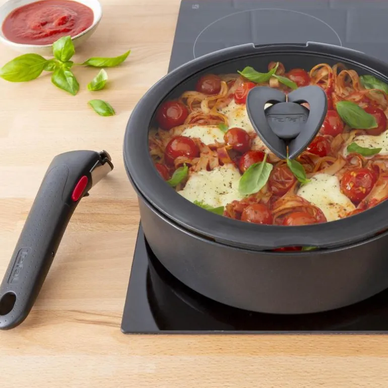 Glasslokk 28 cm i Ingenio serien til Tefal. Fra koketoppen til ovnen, til bordet, kjøleskapet eller oppvaskmaskinen, er Ingenio løsningen for alle som ønsker allsidig utstyr. Disse glasslokkene er fullstendig kompatible med Ingenio gryter, sautépanner og wokpanner. De har geniale, sammenklappbare knotter og et plassbesparende design som gjør at de kan stables for enkel oppbevaring.