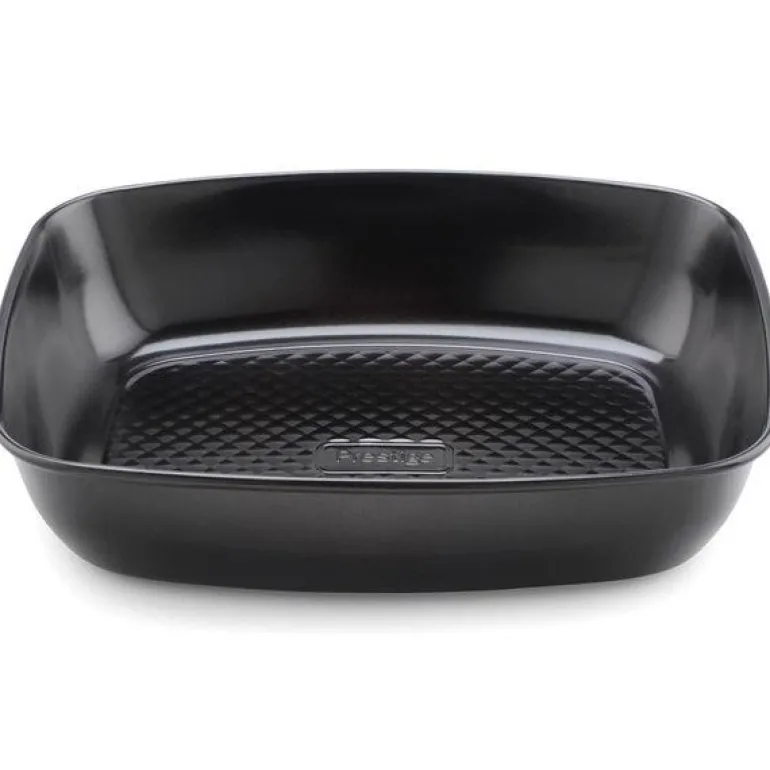 Prestige Inspire Non-Stick ildfast form i størrelsen 34x30x6,5 cm er et praktisk verktøy på kjøkkenet. Den er laget av karbonstål, et materiale som gir rask og jevn varmefordeling for gode resultater uansett om du baker eller lager middagsretter. Formen har CushionSmart™ non-stick-overflate, som skaper luftsirkulasjon rundt maten og gir jevn steking samt enklere frigjøring etter bruk. Den tåler ovnstemperaturer opptil 240 °C og kan trygt oppbevares i både kjøleskap og fryser. Rengjøringen går lett i oppvaskmaskinen. En pålitelig og allsidig ildfast form med 25 års garanti.