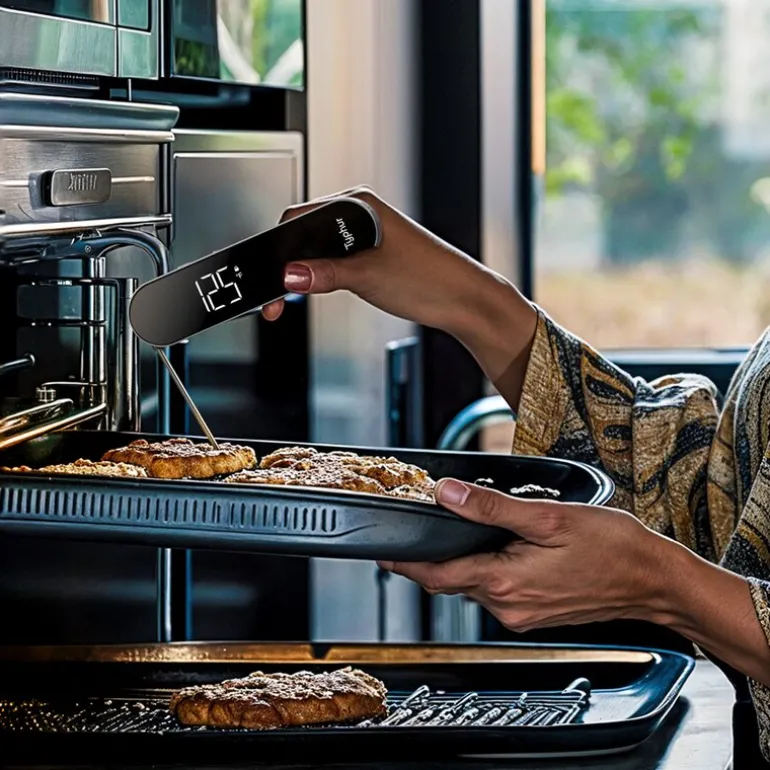 Den store og lyssterke OLED-skjermen er utstyrt med bevegelsessensorer og ambidekstral funksjonalitet, slik at skjermen tilpasser seg automatisk og gir tydelige avlesninger uansett lysforhold. De store skriftene og den skarpe skjermen gjør det enkelt å lese temperaturen raskt og effektivt, noe som er spesielt praktisk i travle kjøkkenmiljøer. Termometeret er også IP67-klassifisert, noe som betyr at det tåler vann og kan vaskes etter bruk, og en integrert magnet gjør det enkelt å oppbevare.