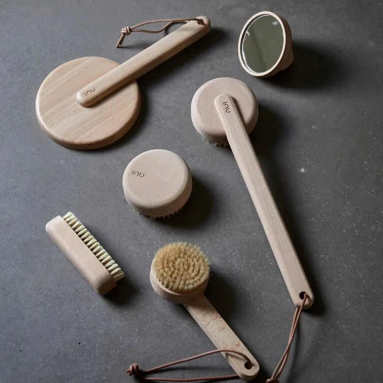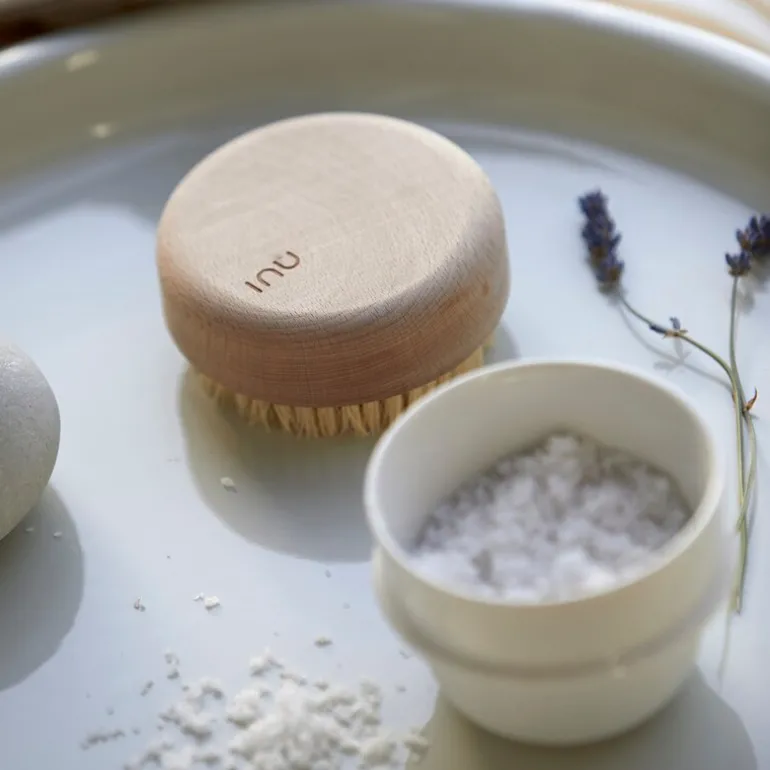 Inu badebørste fra Zone Denmark er en liten, men effektiv børste designet for de små øyeblikkene av velvære i hverdagen. Den kompakte, runde formen ligger godt i hånden og gjør den spesielt velegnet til fotpleie.