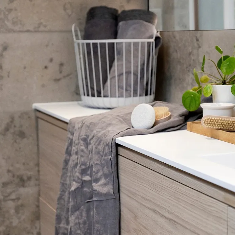 Børsten er laget av FSC®-sertifisert bøk, et naturlig og slitesterkt materiale, kombinert med bust av kaktusfibre som gir en skånsom, men grundig eksfoliering. Den myke, organiske formen gjør den behagelig å bruke, samtidig som den passer fint inn i en spa-inspirert baderomsstil.