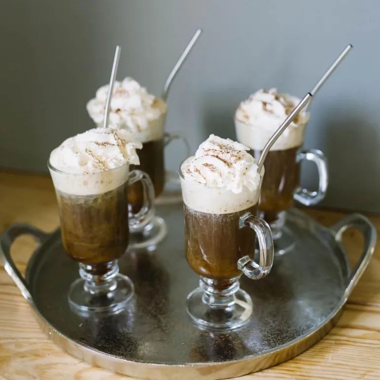 Sett med 4 glass til Irish coffee, Iona, fra Dorre. Om vinteren er irsk kaffe ekstra god. Dette kaffesettet består av fire klassiske glass med håndakt og 4 sugerør i rustfritt stål, slik at du kan servere drinkene på en fin måte.