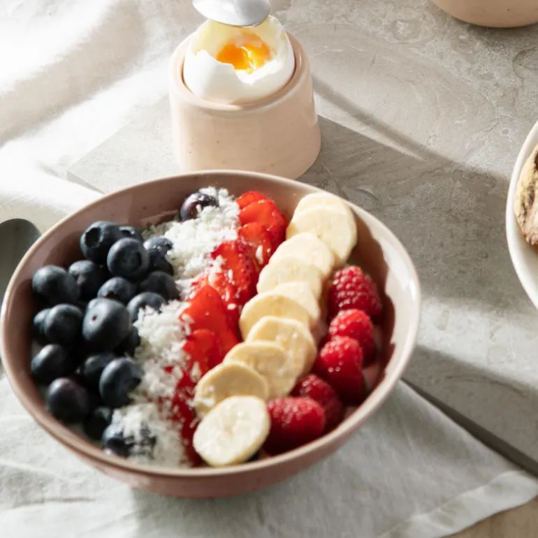 Iris skål dyp 15,5 cm i rosa fra Anders Petter-serien er en allsidig skål laget av robust steintøy fra Portugal. Med en diameter på 15,5 cm er den perfekt for frokostblanding, forrettssupper eller som en skål til snacks eller taco-tilbehør. Skålen tåler oppvaskmaskin, mikrobølgeovn, fryser og ovnstemperaturer opptil 200 °C, noe som gjør den både praktisk og holdbar.