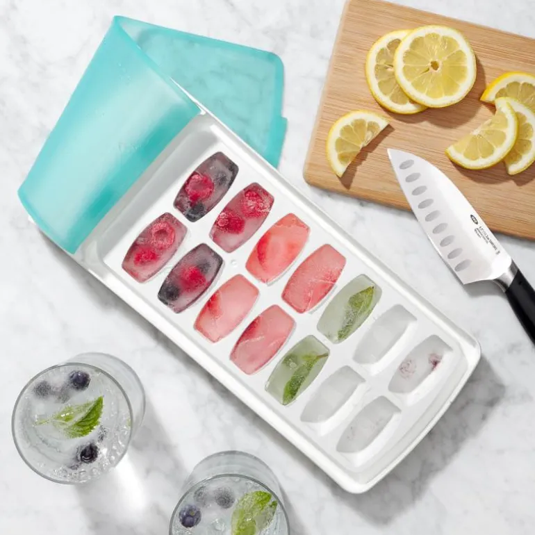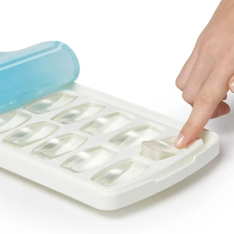 Isbitformen lager 14 isbiter på 22 ml hver. Det innovative silikonlokket gjør at du kan fylle isbitformen helt til randen uten å søle. Når du har fylt formen med vann, legger du lokket over formen og presser evt. overskytende vann ut, før du legger den i fryseren. Silikonlokket forsegler isbitformen, så vannet blir i formen, også selv om du plasserer den med en vinkel. Isbitenes form gjør at det er lett å få dem ut av formen, når de skal brukes.