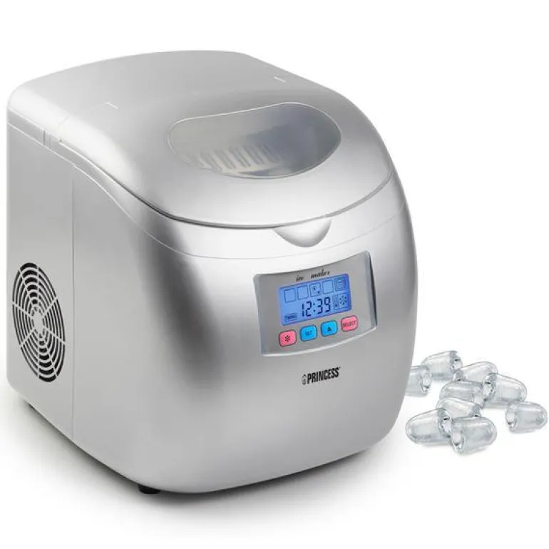 Princess isbitmaskin produserer automatisk 9 kuber på 10 minutter. Perfekt til sommeren og festen! Med det digitale LCD-kontrollpanelet kan du kontrollere størrelsen på isbiten og driftstiden. Med energisparende timer.