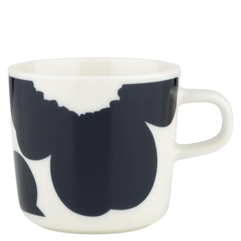 Iso Unikko kopp 20 cl i hvit og mørkeblå fra Marimekko er en del av feiringen av 60-årsjubileet til det ikoniske Unikko-mønsteret. Laget av hvitt steintøy og dekorert med det stiliserte Iso Unikko-mønsteret, er denne koppen både funksjonell og estetisk tiltalende. Den tåler oppvaskmaskin, ovn, mikrobølgeovn og fryser, noe som gjør den allsidig i bruk. Jubileumsstempelet på bunnen markerer dette spesielle året for Marimekko, og produktet har en liten metallmengde i klistremerket som bør fjernes før bruk.