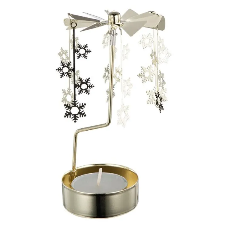 Den vakre dekorasjonen på toppen spinner forsiktig rundt i takt med varmen fra lyset, og danner et englespill som både er elegant og fascinerende å se på. Perfekt for å skape en lun og stemningsfull atmosfære i stuen, på spisebordet eller i vinduskarmen.