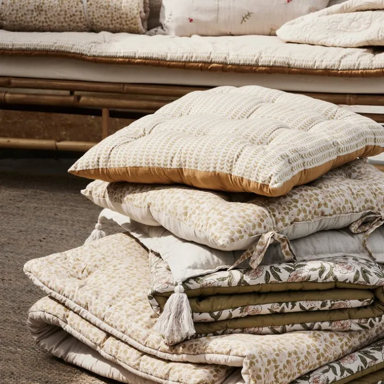 Lene Bjerres Ivenne sittepute i oker tilfører hjemmet ditt en varm og raffinert stemning. Med målene 45×45 cm og en kjerne av resirkulert bomull gir puten en stødig og komfortabel sitteflate. Stoffet i 100 % bomull føles både mykt og slitesterkt.