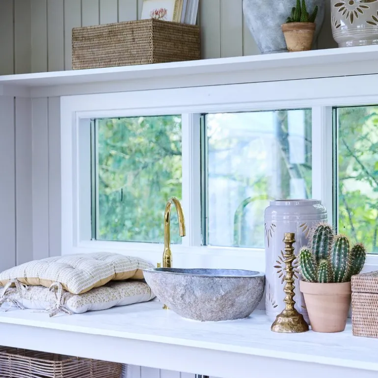 Den ene siden har et blokktrykt mønster som gir et eksklusivt preg, mens baksiden er i en matchende ensfarget tone for enkel styling. Perfekt som et dekorativt og funksjonelt element på kjøkkenstoler, i stuen eller på uteplassen. Puten er skapt for å passe perfekt til Norah-stolene.